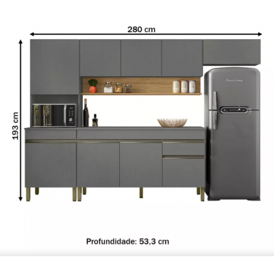 کیت های کامل آشپزخانه خط 9 درب 1 کشو Gris/Freijo-paraná در MDP در مقیاس نیمه براق و نیمه شکل تولید می شود و دارای درجه ای از مشکل نصب است: متوسط.
