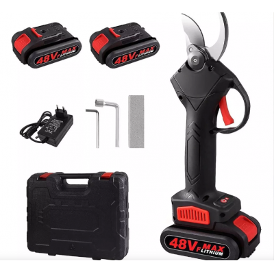 قیچی انبردست هرس شاخه درخت الکتریکی 48V 2 باتری رنگ سیاه
