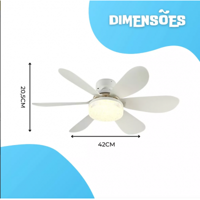 فن سقفی سفید با نور یکپارچه خاموش با کنترل از راه دور