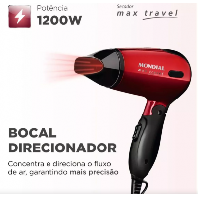 Mondial Max Travel SC-10 سشوار 1200W Bivolt Red/Black 110V/220V