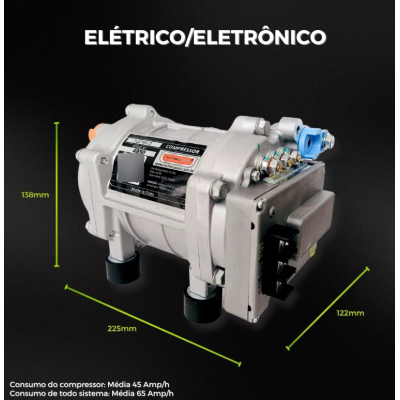Compressor: rotativo tipo Scroll, sem pistões nem cilindros, com espirais helicoidais e inversor de 12v ou 24v IN para Modulação Por Largura de Pulso PWM, sistema exclusivo فنی