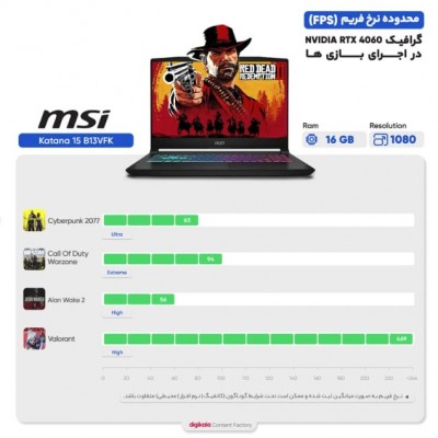 لپتاپ MSI Katana 15 B13VFK یک گزینه اقتصادی برای گیمرهاست که با پردازنده Core i7-13620H، چیپ گرافیکی RTX 4060، رم DDR5 و حافظه SSD سریع، عملکرد قدرتمندی را از خود ارائه میدهد. این لپتاپ ۲.۲۵ کیلوگرم وزن و ۲۴ میلیمتر ضخامت دارد و از بدنهای پلاستیکی ساخته شده است. کیبورد آن با نورپردازی RGB، کلیدهای WASD شفافی دارد که برای بازی مناسب هستند، اما تاچپد آن میتوانست بزرگتر باشد. صفحهنمایش ۱۵.۶ اینچی IPS با وضوح FHD و نرخ ۱۴۴ هرتز روان است، اما ۲۵۰ نیت روشنایی و دقت رنگ مت ...